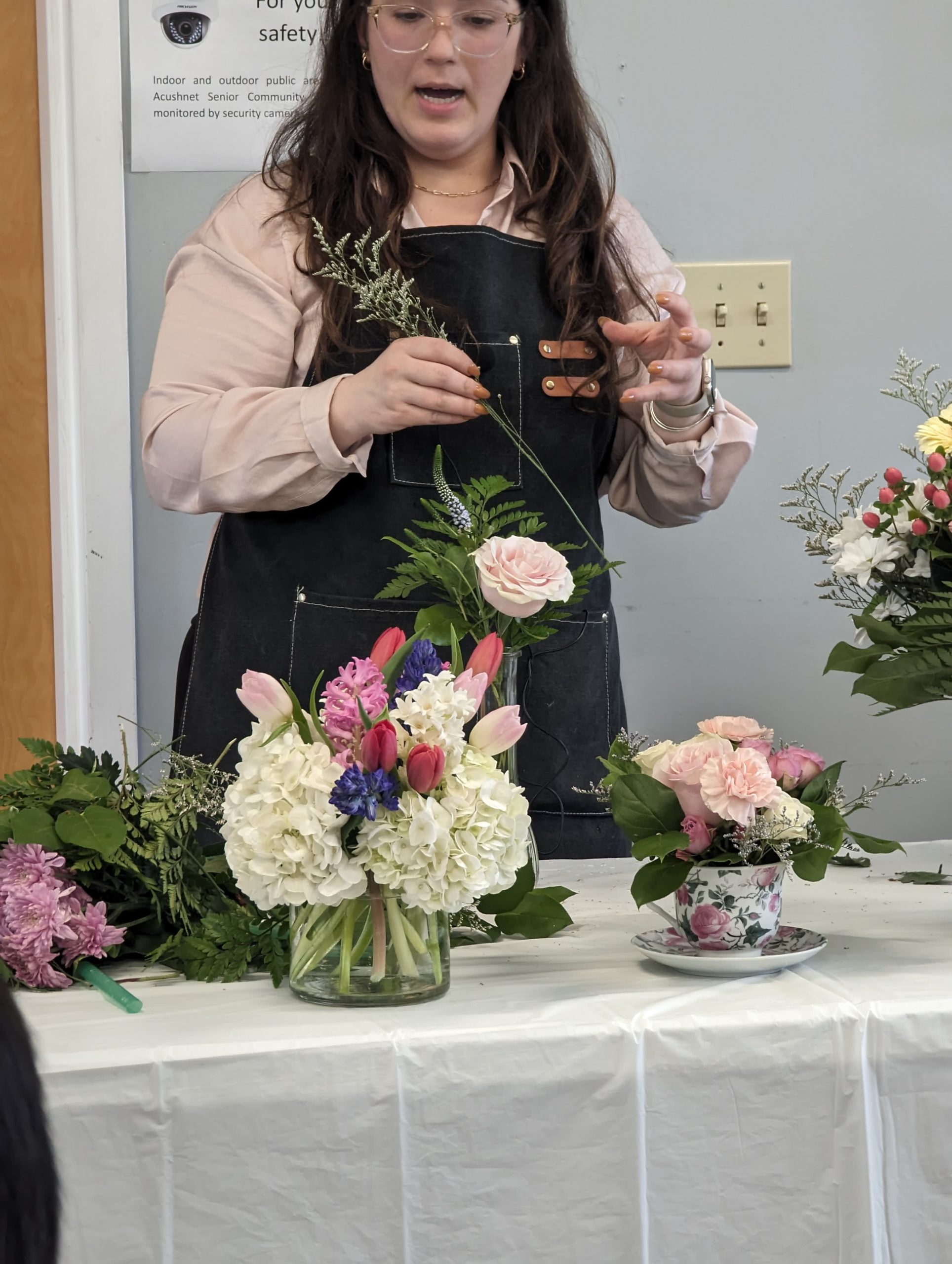 The Garden Therapy Committee shall initiate community involvement by partnering with the Activity Directors in two or more Greater New Bedford Assisted Living or Nursing Homes. The programs will include creating floral arrangements or various greenery displays.