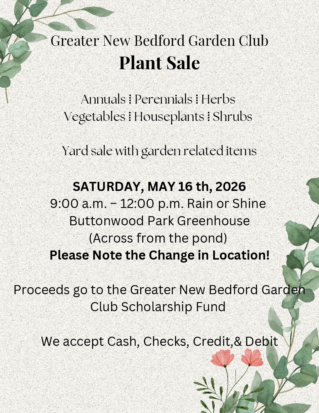 Proceeds go to the Greater New Bedford Garden Club Scholarship Fund